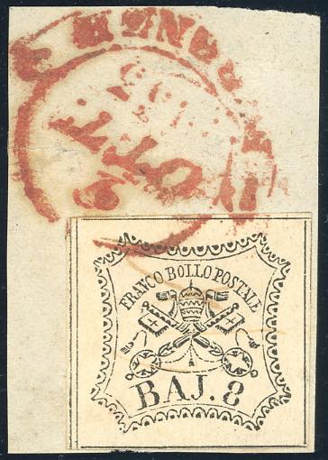 FIRENZE, cerchio a banderuola rosso - 8 baj bianco (Pontificio), perfetto, usato presumibilmente in arrivo con il bollo Toscano. Probabilmente unico, non catalogato.