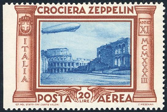 Lot 336 - 1933 - 20 lire Crociera Zeppelin (50), non dentellato a ...