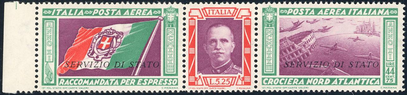 1933 - 5,25 + 44,75 lire trittico Servizio di Stato (1), ottima centratura, gomma integra, perfetto. Molto bello! Cert. G.Oliva.