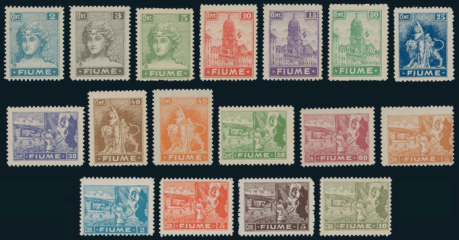 Lot 607 - FIUME 1919 - Allegorie e vedute, carta C, 17 valori ...