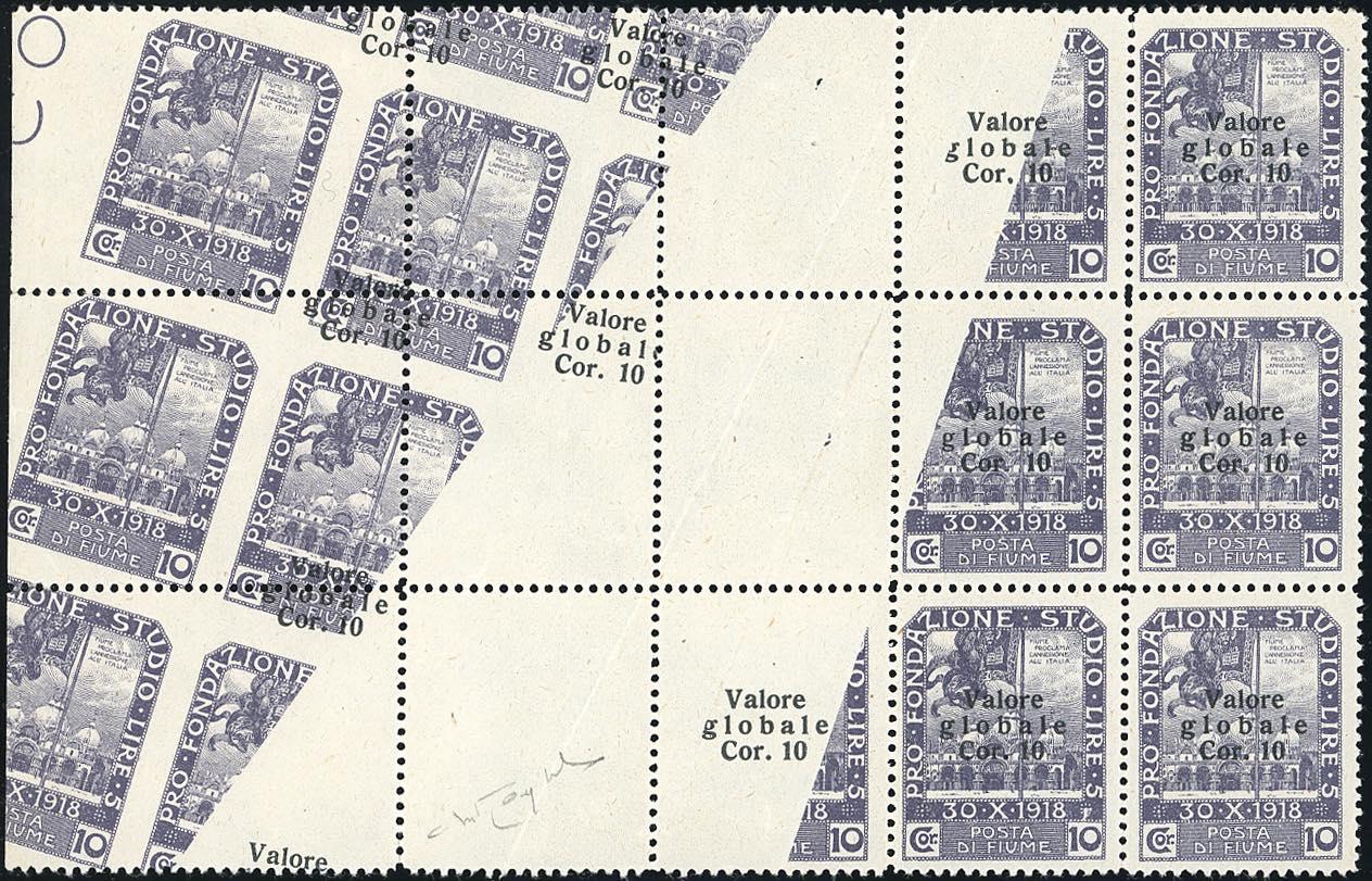 Lot 616 - FIUME 1920 - 10 c. Valore globale, blocco di 12 esemplari ...
