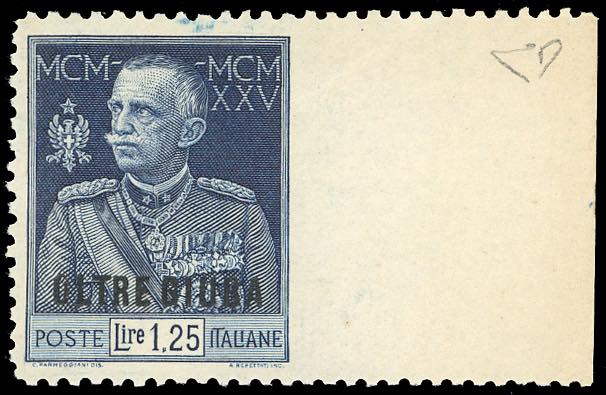 1925 - 1,25 lire Giubileo, dent. 11, non dentellato a destra, bordo di foglio (20aa), gomma integra, perfetto. Splendido e raro! E.Diena.