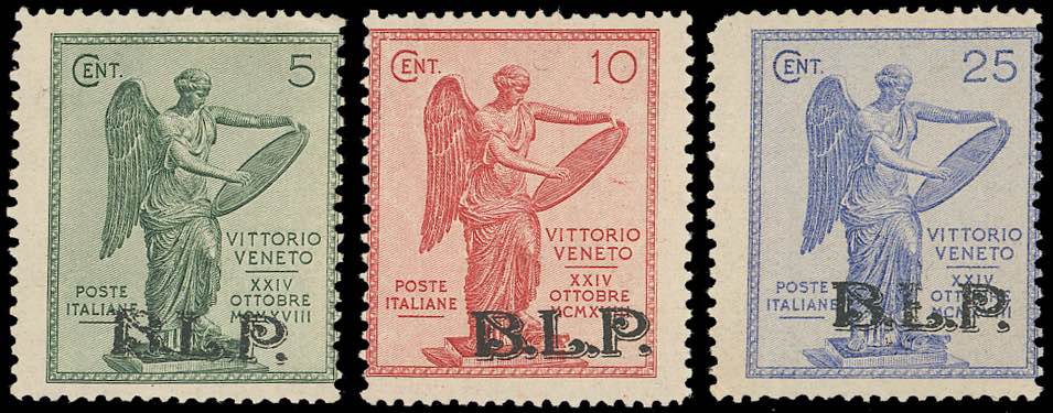 Lot 1157 - 1922 - 5, 10 e 25 cent. Vittoria, soprastampati BLP, non ...