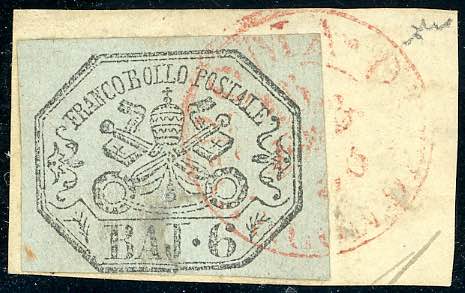 ROMA CIRCONDARIO, 2 C rosso punti R1 - 6 baj (7b), perfetto, usato su piccolo frammento. Ferrario, Chiavarello. Ex. Coll. Imperato.