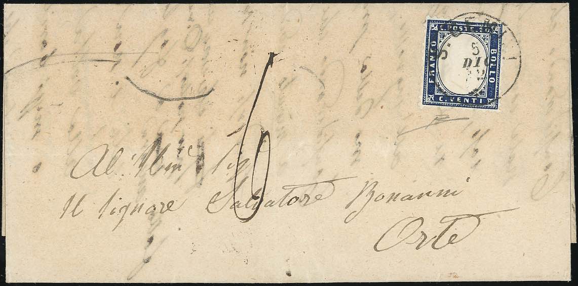 SAN GEMINI, C1 punti 10 - 20 cent. (Regno 2), perfetto, su lettera del 5/12/1862 per Orte, tassata 6 bajocchi. Bella! R.Diena.