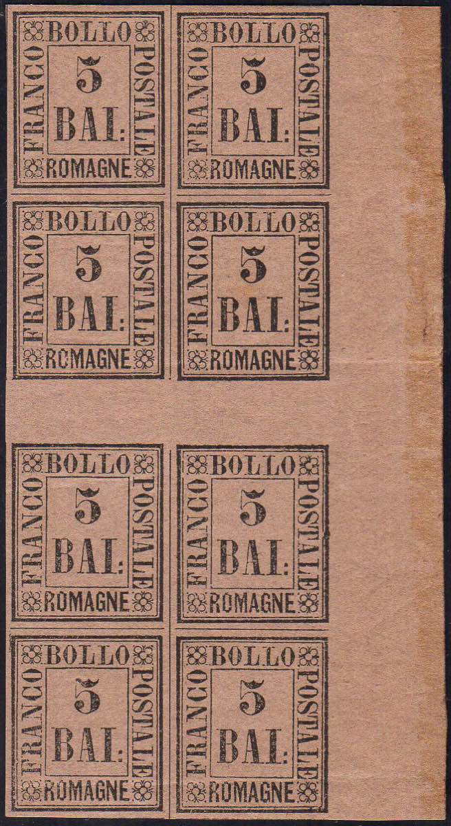 1859 - 5 baj violetto (6), blocco di otto con interspazio al centro, bordo di foglio, gomma originale, integra per gli esemplari con ... Read more