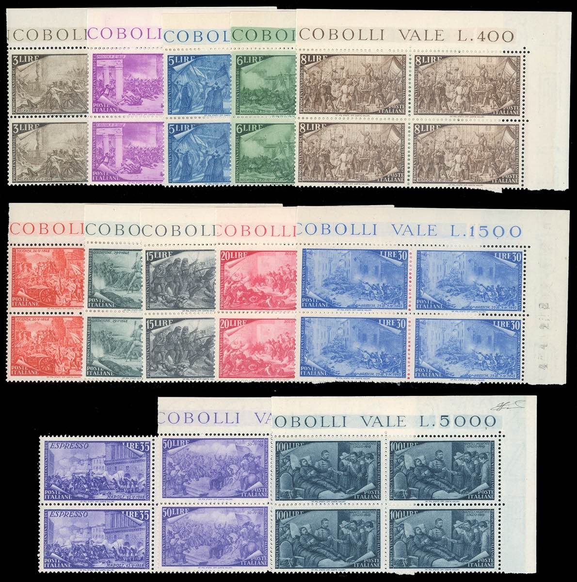 Lot 924 - 1948 - Risorgimento (580/591+E), ottima centratura, blocchi ...
