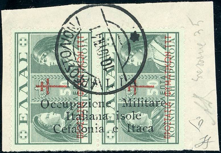 EMISSIONI DI ARGOSTOLI 1941 - 50 l. + 50 l. Beneficenza (35), perfetto, usato su frammento. A. ed E.Diena, Ferrario.