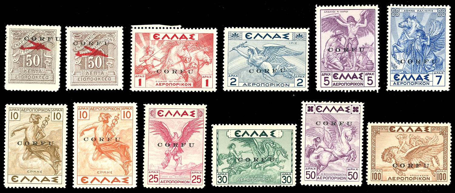 CORFU' POSTA AEREA 1941 - Serie completa, soprastampati (1/12), nuovi, gomma originale integra, il 5d. ha traccia di linguella, perfetti. Bellissimi e rari! A.Diena, G.Bolaffi, cert. Ferrario.