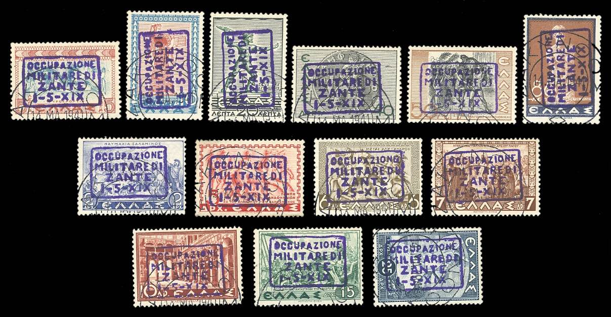 ZANTE 1941 - Mitologica soprastampata, il 10 lepta con varietà "TYPI" (5,6A,7/17), usati, perfetti. Cert. A.Diena.