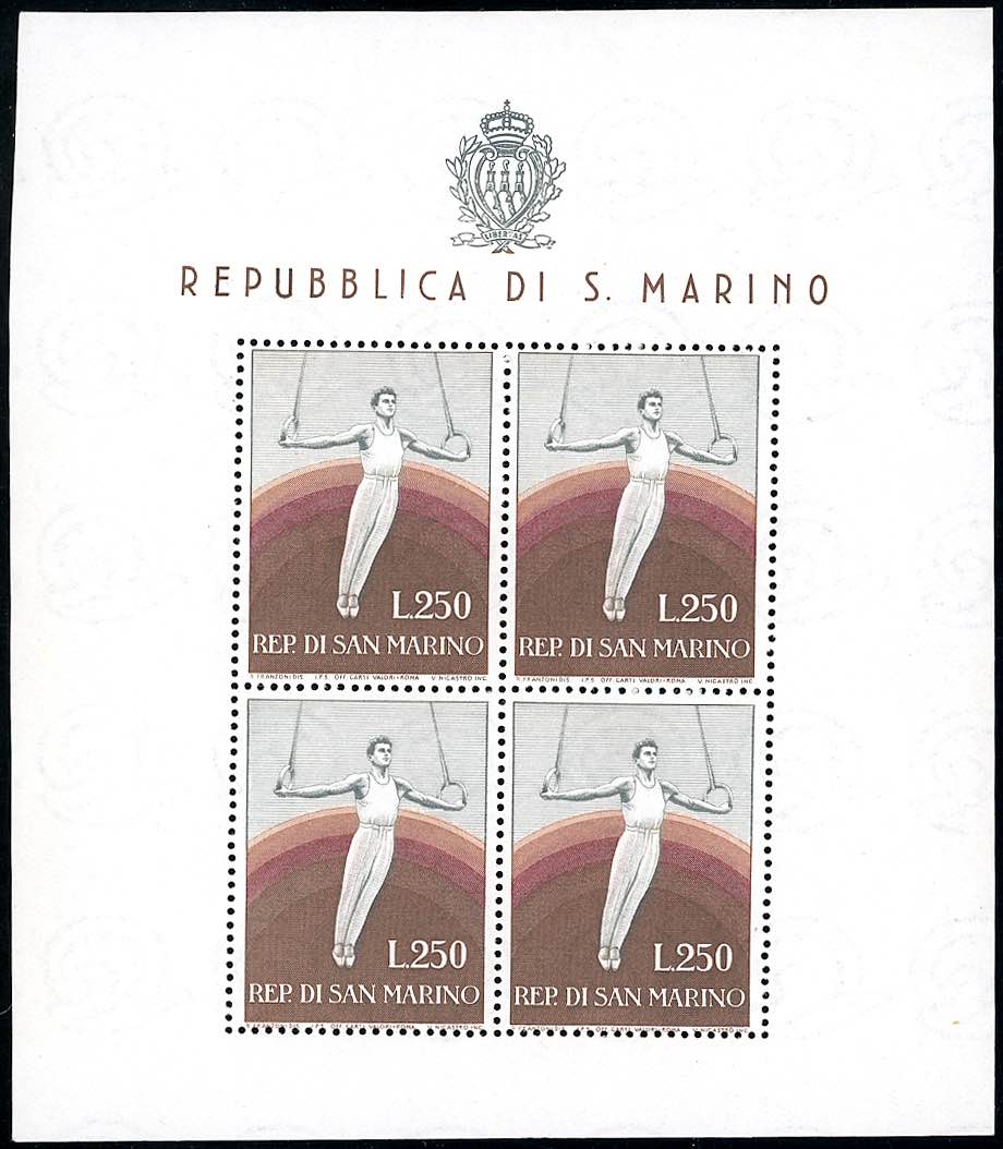 1955 - 250 lire Ginnasta, foglietto (17), gomma integra, perfetto. Ferrario.