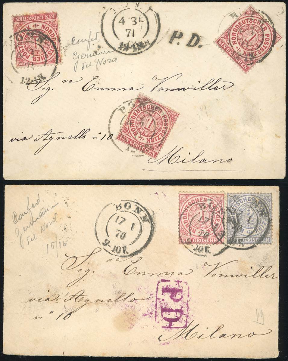 GERMANIA - ANTICHI STATI 1852/1890 - Bell'insieme di trentanove lettere variamente affrancate con amissioni del periodo. Notate alcune interessanti presenze, alto valore di catalogo. Merita esame.