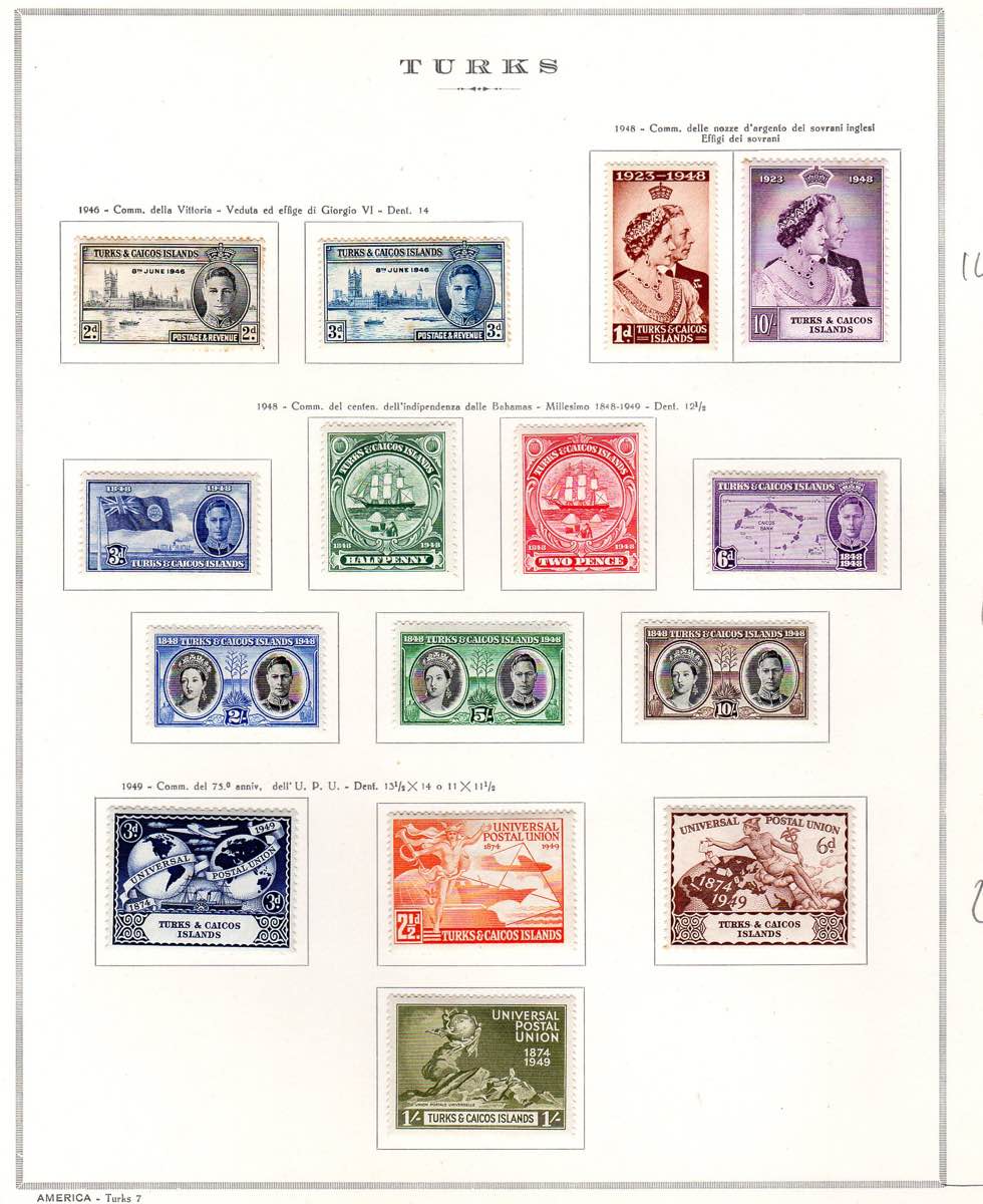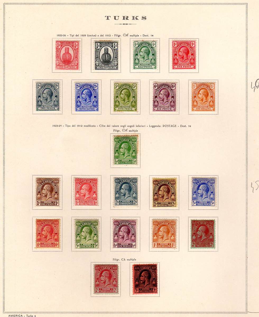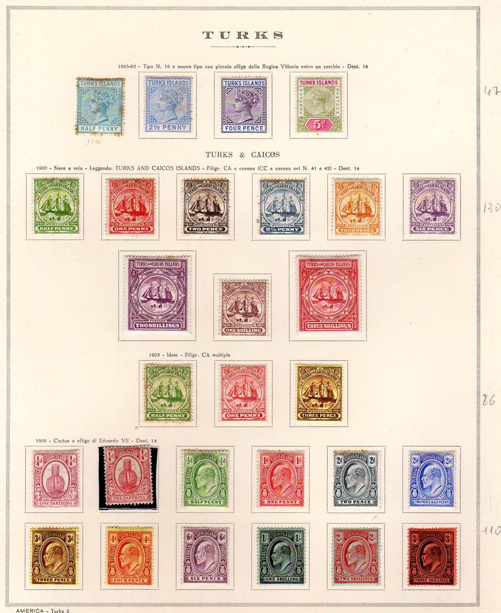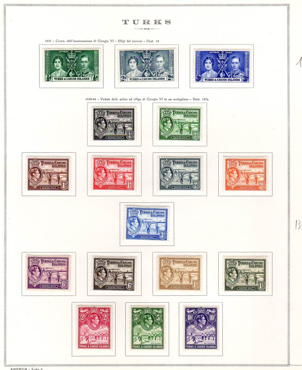 BRITISH COMMONWEALTH - TURKS E CAICOS 1867/1950 - Avanzata collezione di rancobolli nuovi del periodo, gomma originale MH/MLH, su fogli d'album. Qualità generalmente buona, qualche esemplare presenta lievi ossidazioni. Alto valore di catalogo.