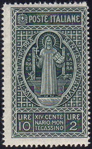 1929 - 10 + 2 lire Montecassino, carta sottile (268a), gomma integra, perfetto. Non comune! Cert. Ferrario.