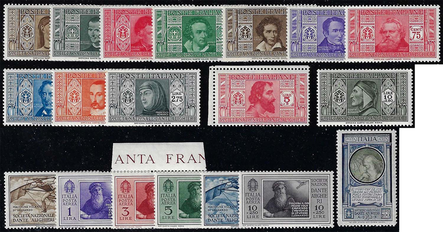 1932 - Dante, serie completa con 100 lire (303/314,A+A41), perfetti, gomma integra. Ottima qualità.