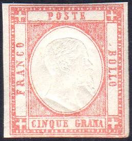 1861 - 5 grana vermiglio, filetto di inquadratura in basso completo (21a/o), gomma integra, perfetto. Cert. Ferrario.