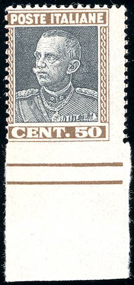 1927 - 50 cent. Parmeggiani, non dentellato in basso (218i), bordo di foglio, gomma integra, perfetto. Cert. Raybaudi.