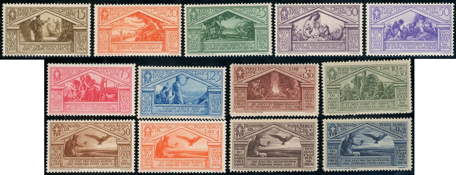 1930 - Virgilio (282/290+A), gomma integra, perfetti. Molto freschi, buona centratura. Alti valori cert. Ferrario.