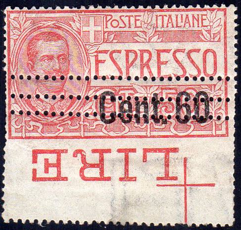 1922 - 60 cent. su 50 cent., tripla dentellatura in basso (6m), bordo di foglio, gomma integra, perfetto. Emilio Diena.