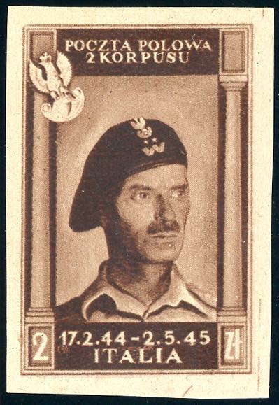 1946 - 2 z. bruno cioccolato scuro Vittorie polacche, non dentellato (13B), gomma integra, perfetto. Ferrario.