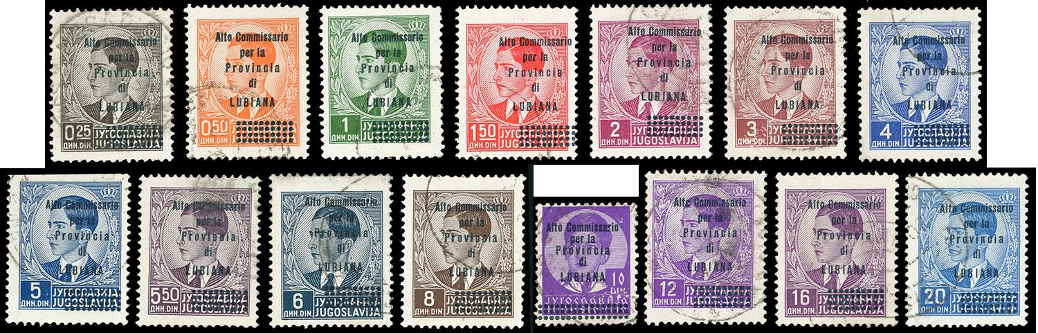 LUBIANA 1941 - Soprastampati "Alto Commissario" (42/56), usati, perfetti. Rari! Alti valori A.Diena e cert. Ferrario.