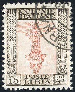 1926 - 15 cent. Pittorica, dent. 11, centro capovolto (62a), perfetto, usato a Derna. Molto bello e raro! A.Diena, cert. Sorani.