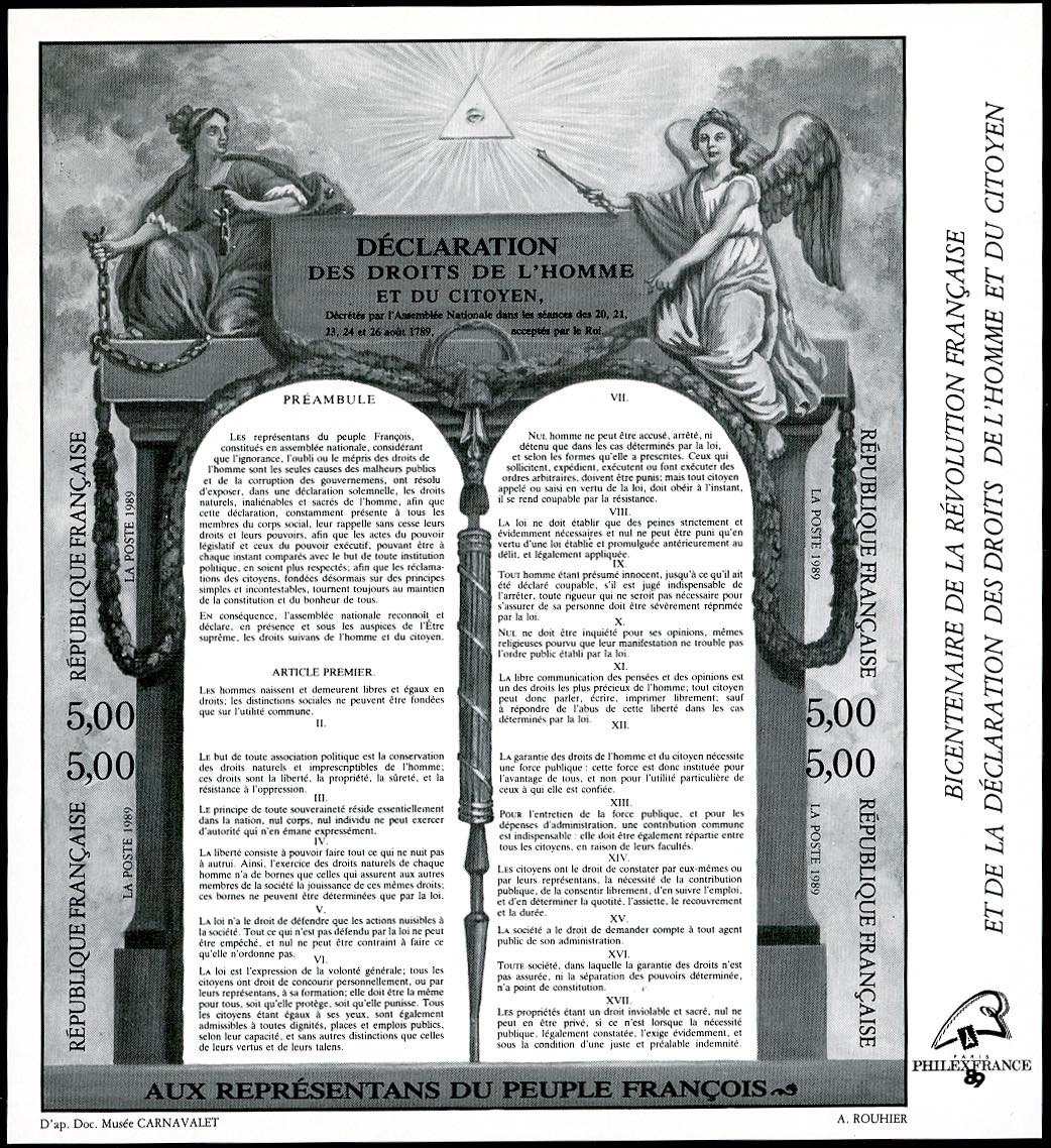 FRANCIA FOGLIETTI 1989 - Rivoluzione francese, foglietto stampato in nero (BF11A), gomma integra, perfetto.