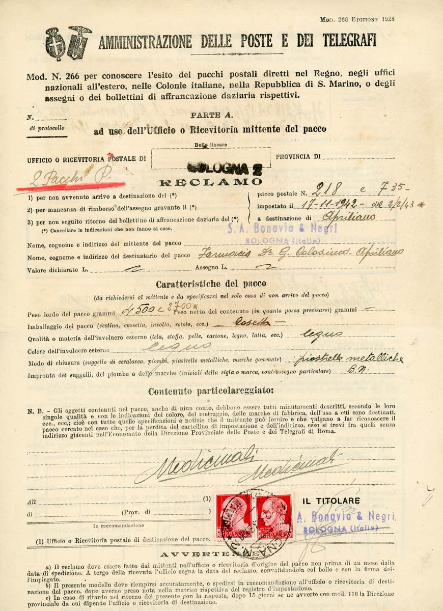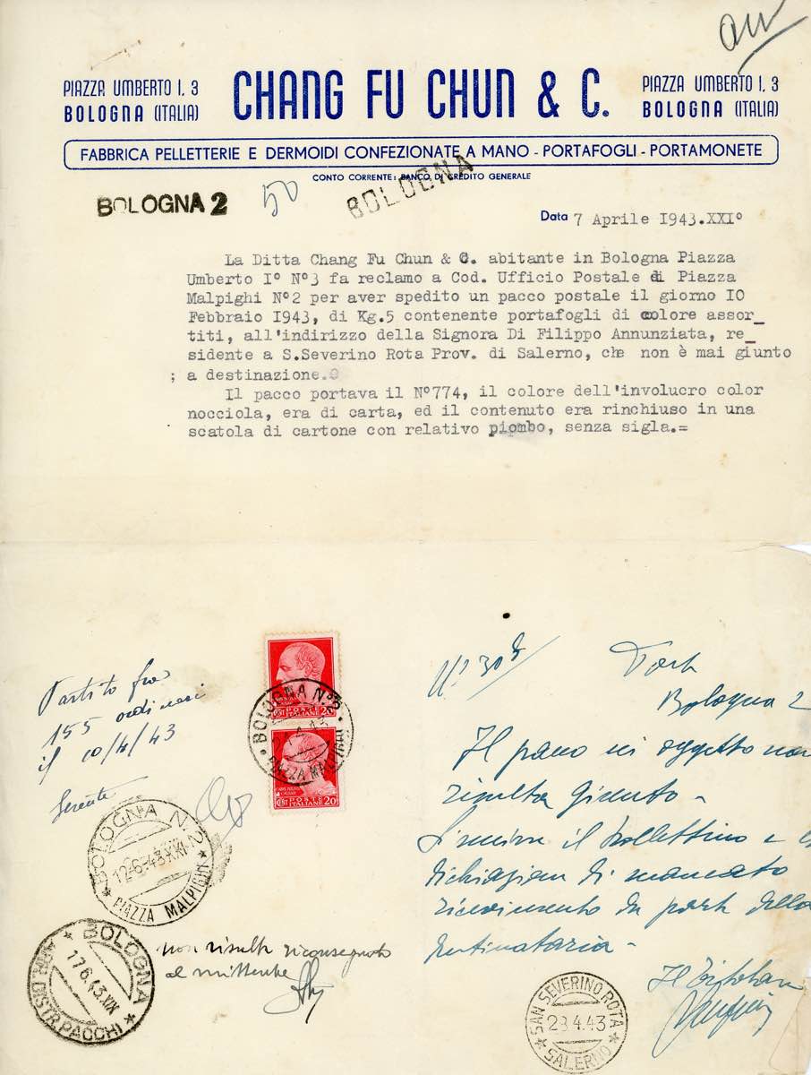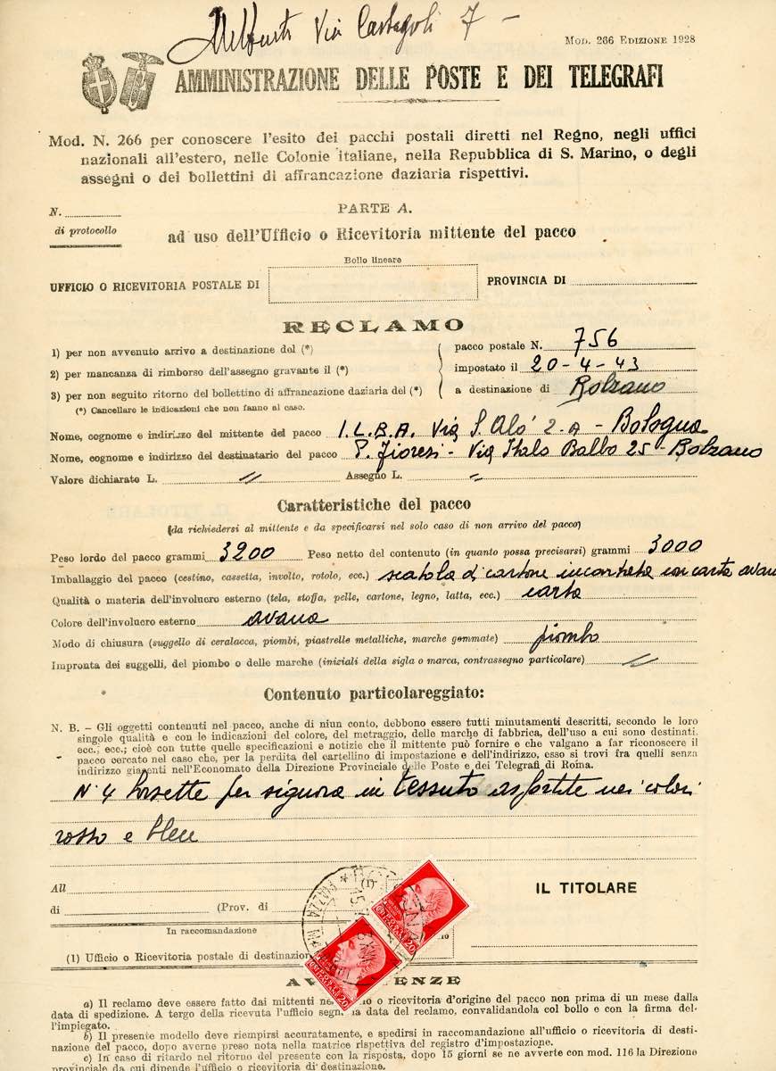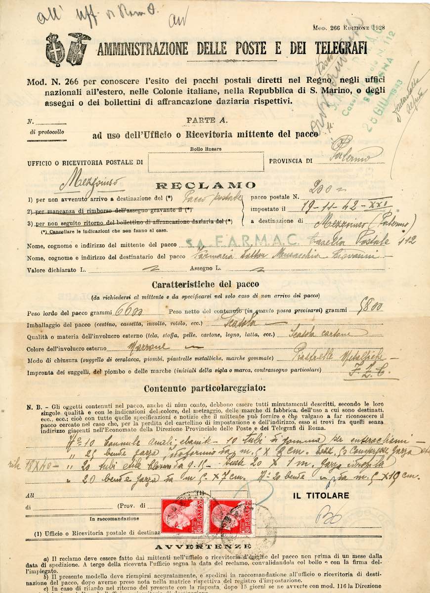 REGNO D'ITALIA 1943 - Quattordici moduli di reclami affrancati con coppia del 20 cent. Imperiale. Non comuni ed interessanti.