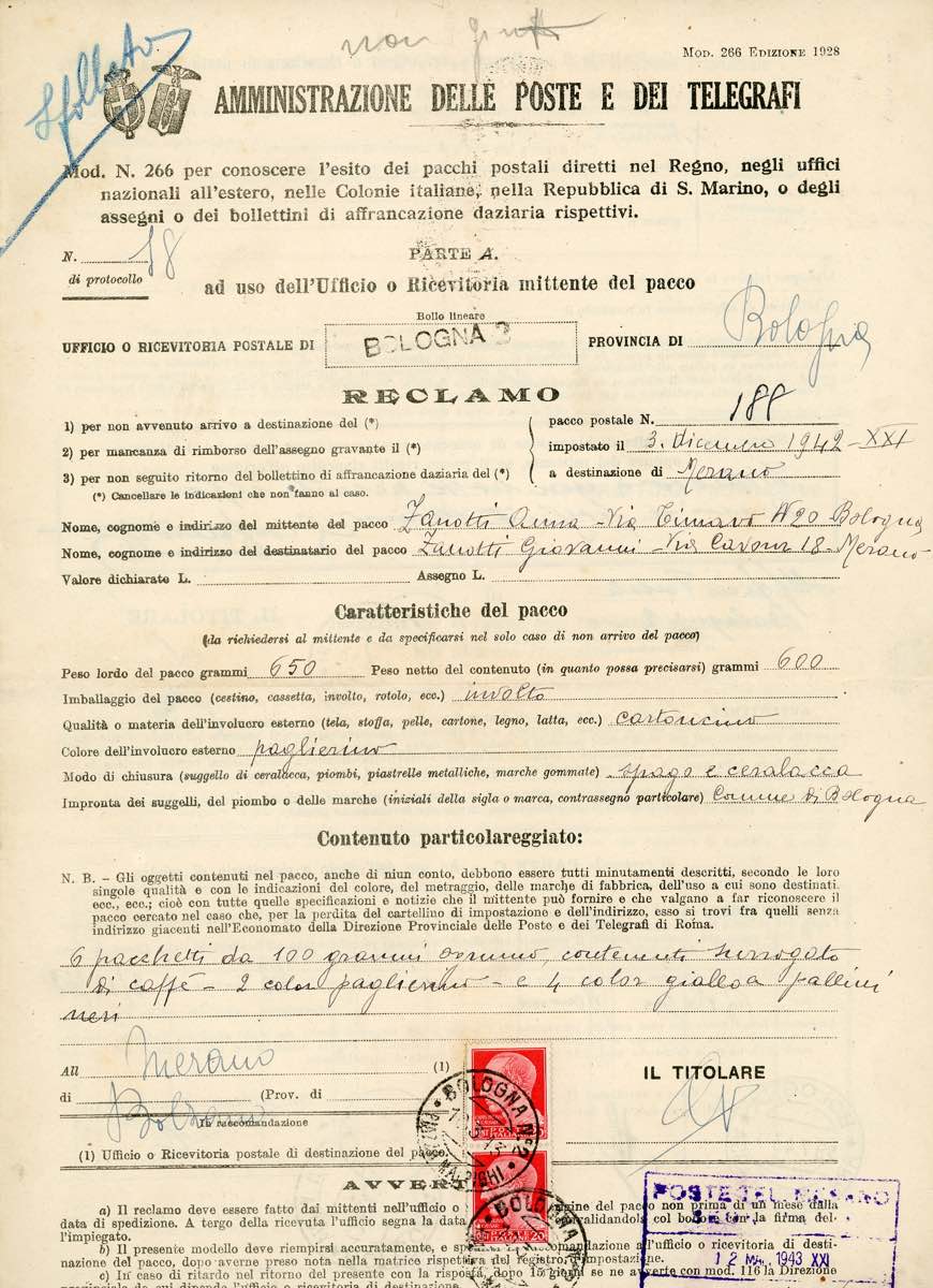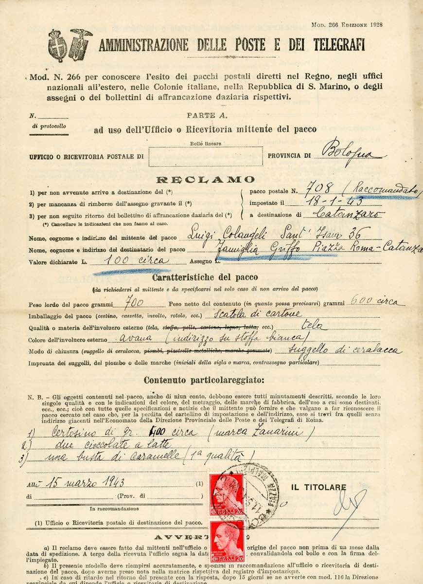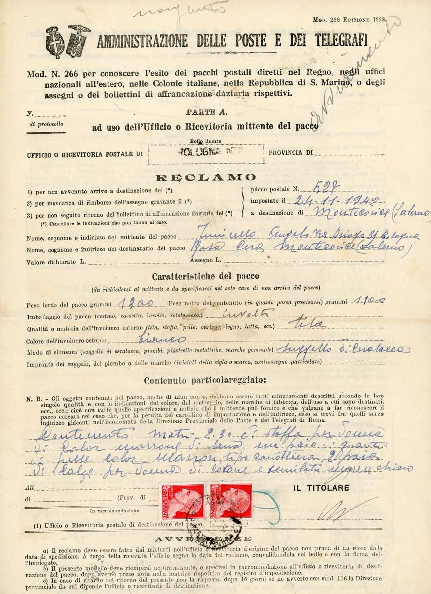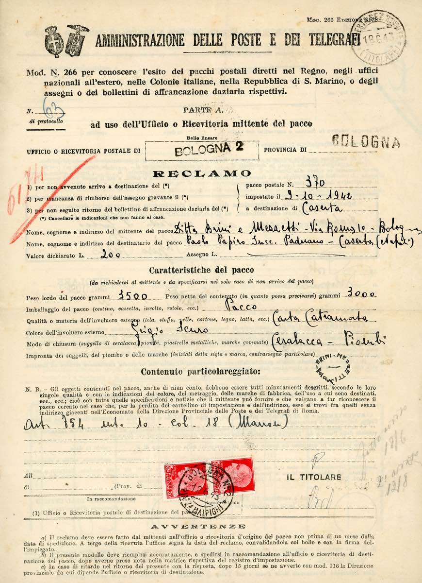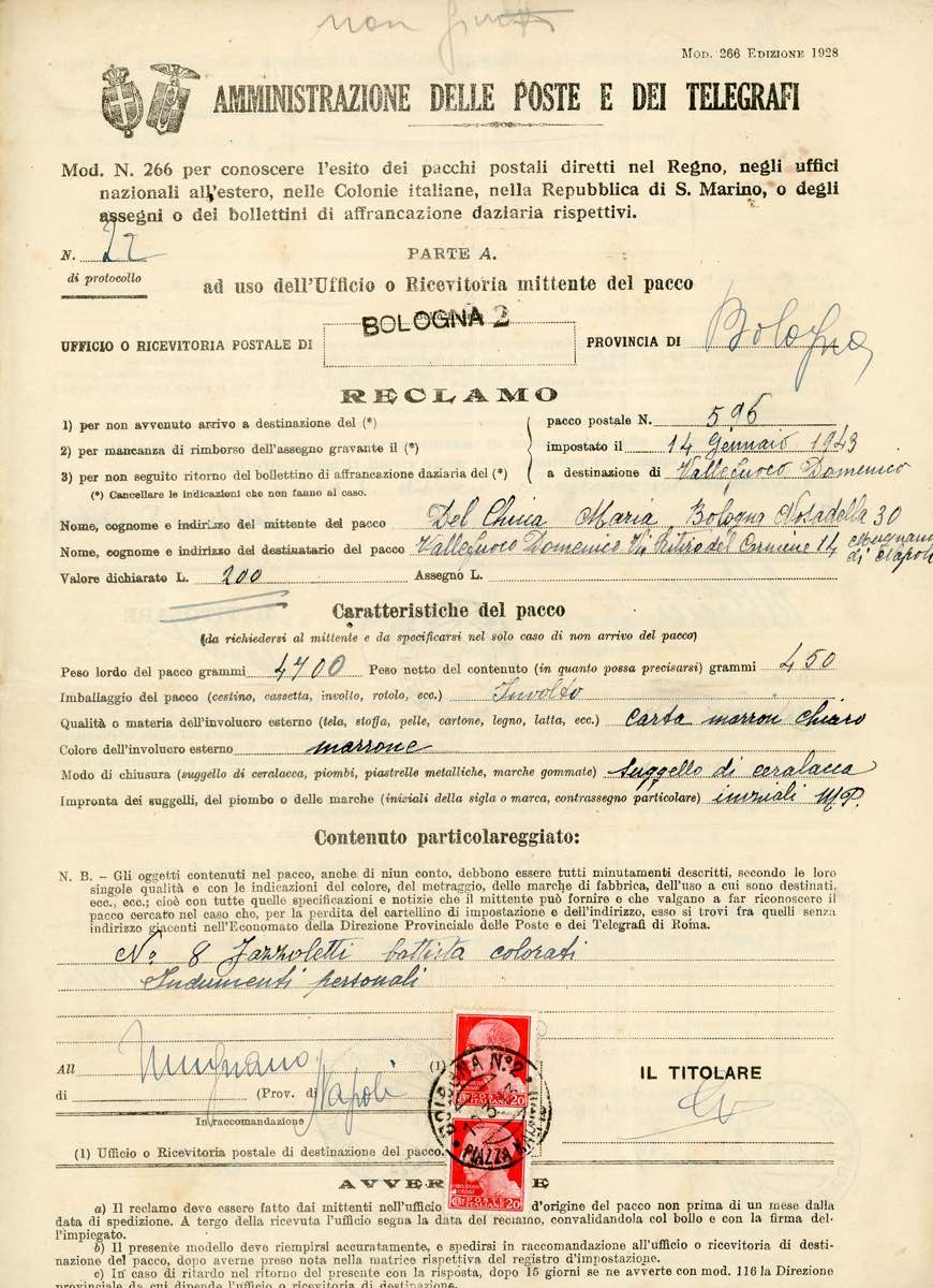 REGNO D'ITALIA 1943 - Quattordici moduli di reclami affrancati con coppia del 20 cent. Imperiale. Non comuni ed interessanti.