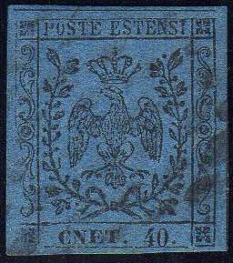 Lot 90 - 1854 - 40 cent. azzurro scuro, punto dopo le cifre, errore ...