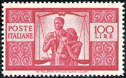1946 - 100 lire Democratica, dent. 14 x 13 1/4 (565/I), gomma integra, perfetto. Molto fresco. Ferrario.