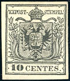Lot 43 - 1857 - 10 cent. nero, carta a macchina (19), gomma ...