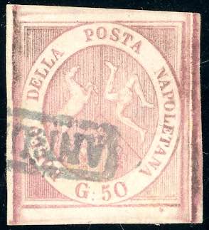 1858 - 50 grana rosa brunastro (14), usato, perfetto, margini eccezionali. Splendido e raro in queste condizioni. Cert. Ferrario.