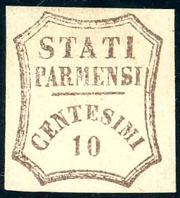 1859 - 10 cent. bruno (14), gomma originale, perfetto. Em.Diena, cert. Ferrario.