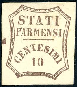 1859 - 10 cent. bruno, bella varietà di clichè (14), gomma originale, perfetto. Em.Diena, cert. Ferchenbauer.