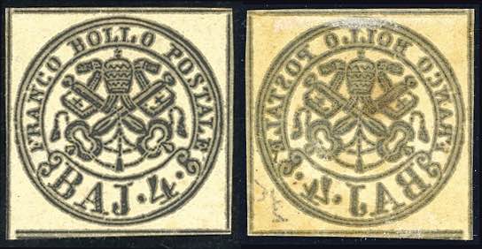 Lot 443 - 1858 - 4 baj giallo chiaro, decalco (5Abca), gomma ...