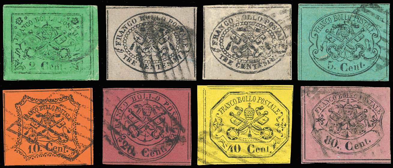 1867 - Seconda emissione, serie completa di otto valori (13/20), usati, buono/ottimo stato. I valori principali firmati da noti periti.
