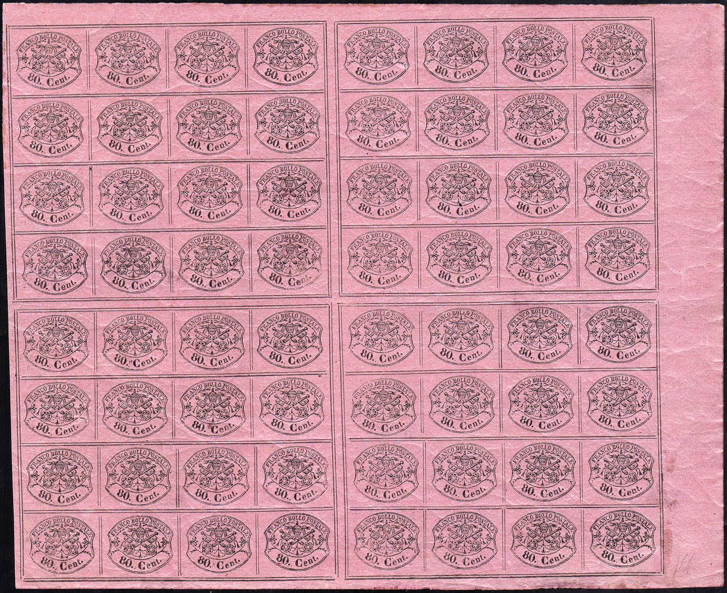 Lot 510 - 1867 - 80 cent. rosa lillaceo (20), foglio completo di 64 ...