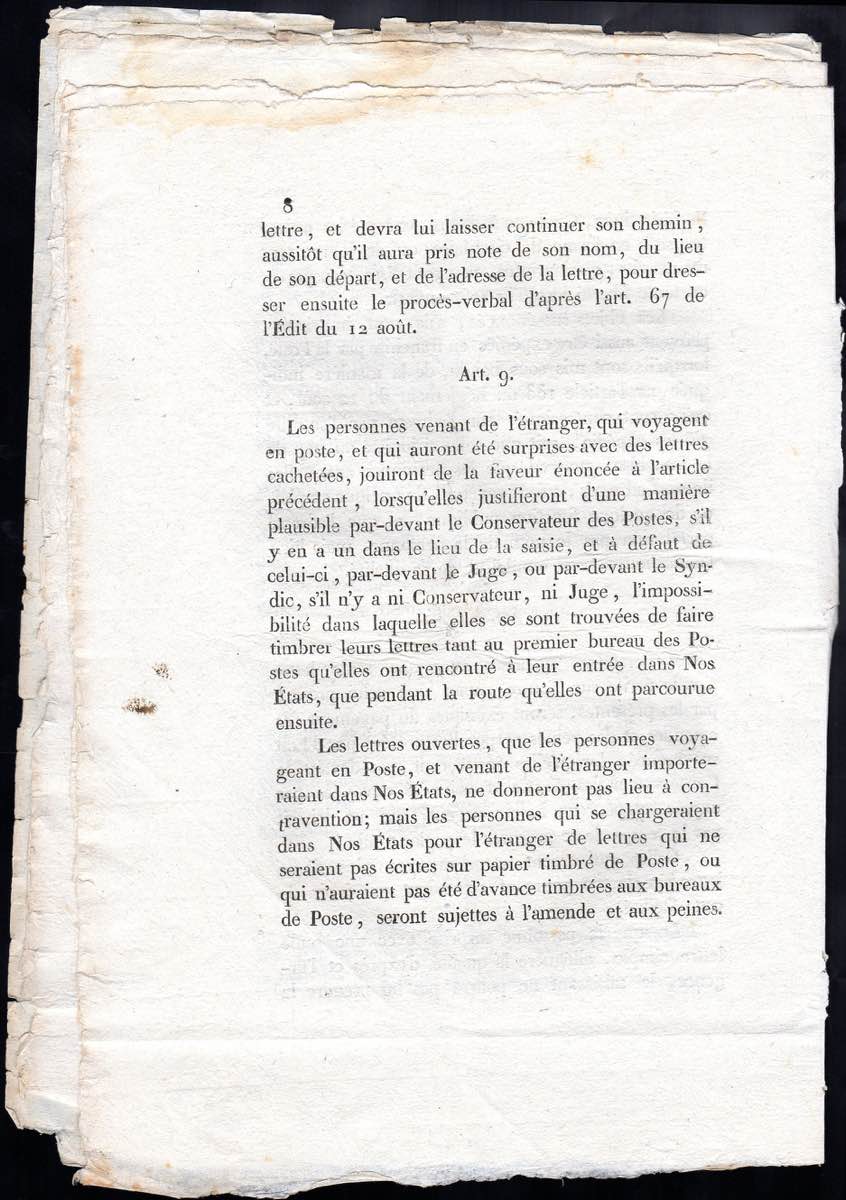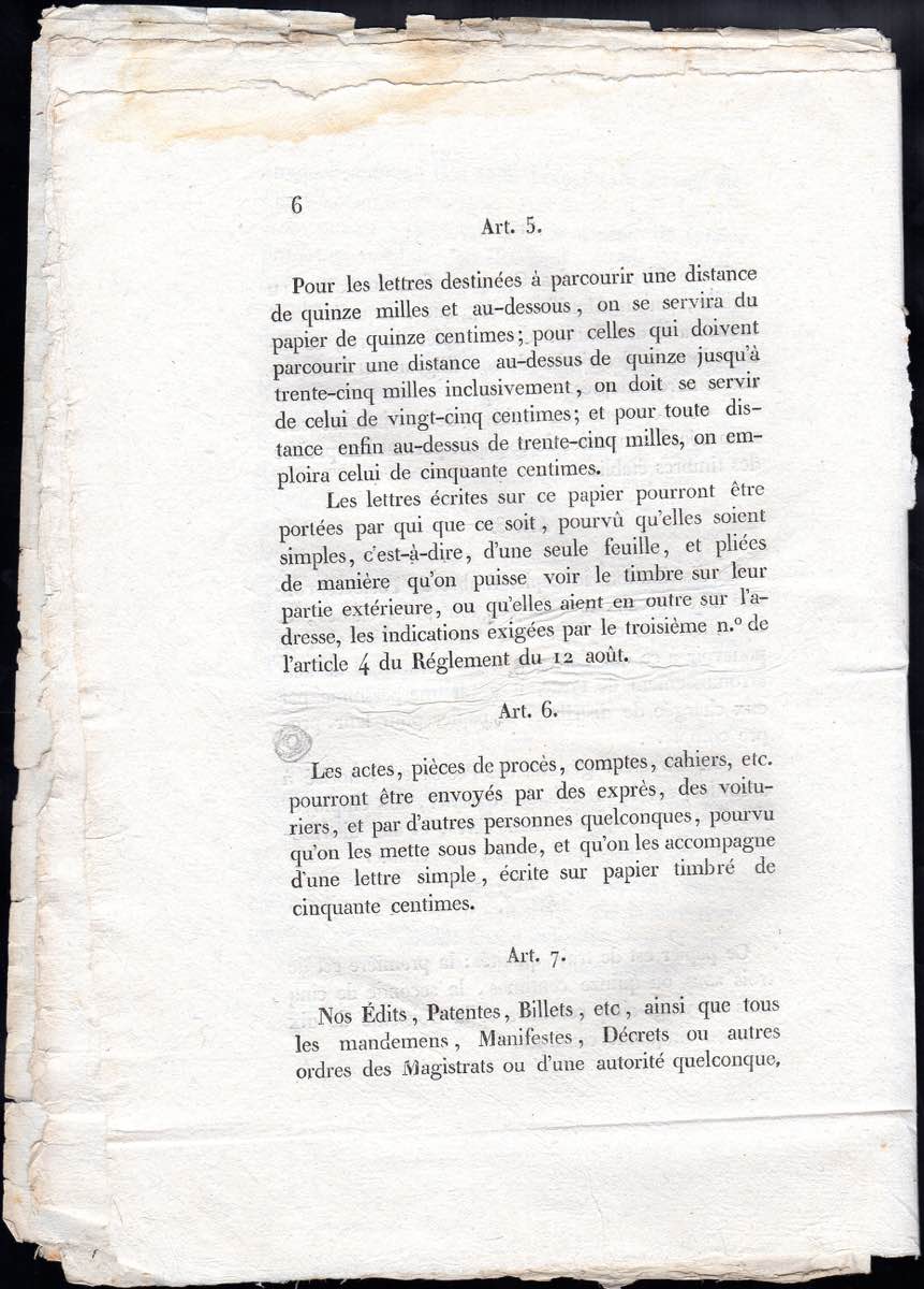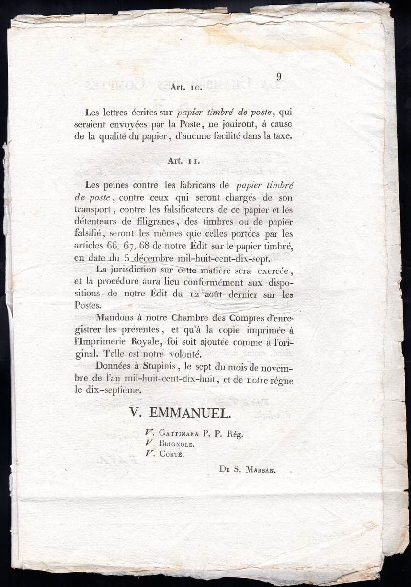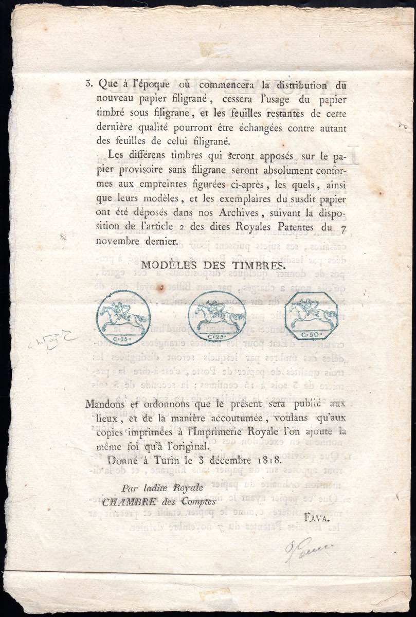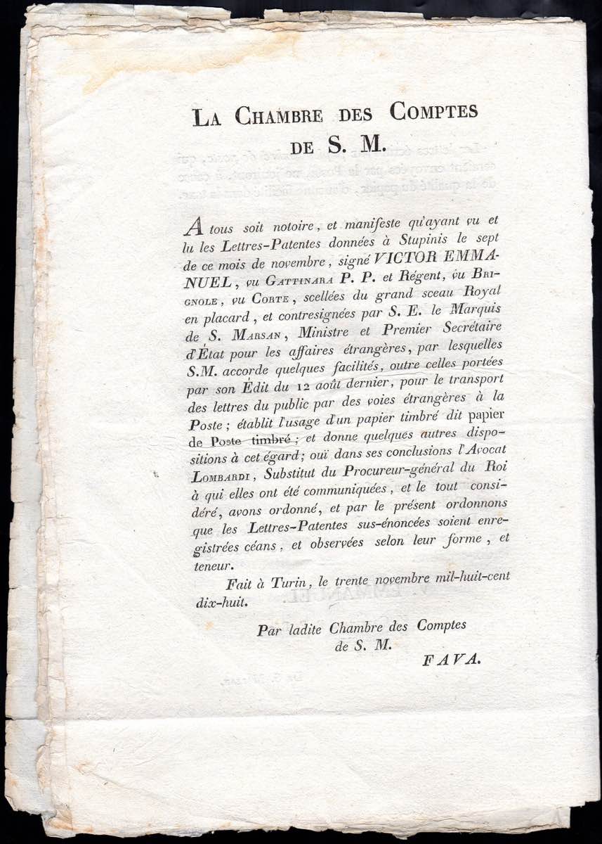 1818 - Manifesto camerale del 3/12/1812 in FRANCESE, con la riproduzione delle tre impronte a stampa dei Cavallini. Allegato il Regolamento ... Read more