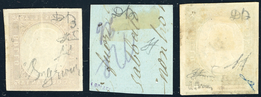 1854 - Terza emissione, serie completa (7/9), usati, perfetti. A.Diena per il 5 cent., Grioni e Fiecchi per il 40 cent., cert. Ferrario per la serie.