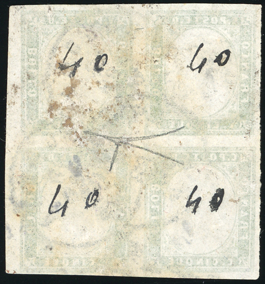 Lot 623 - 1862 - 5 cent. verde giallastro (13Da), blocco di quattro, ...
