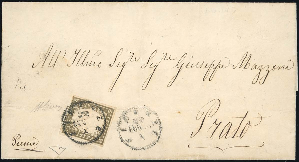 1861 - 10 cent. grigio bistro chiaro, EFFIGIE CAPOVOLTA (14Cc), ottimo stato, su lettera da Firenze 22/7/1861 a Prato. Rarissima e molto fresca! Diena, cert. E.Diena.