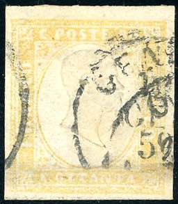 Lot 683 - 1859 - 80 cent. giallo ocra pallido (17A), usato, perfetto. ...