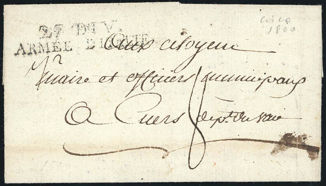 1800 ca. - Sovracoperta di lettera per la Francia con il bollo della 27a Divisione dell'Armee d'Italie, tassata 8 decimi. Interessante.