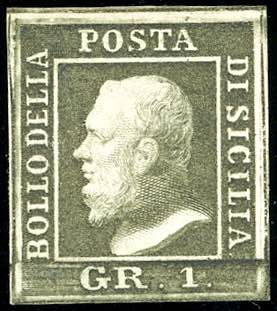 1859 - 1 grano verde oliva scuro, carta di Palermo (5c), gomma originale, perfetto. Molto bello. Emilio e A.Diena.