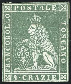 Lot 836 - 1851 - 4 crazie verde su grigio (6), gomma originale, lievi ...