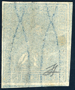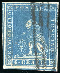 1857 - 6 crazie azzurro (15), perfetto e ben marginato, usato. Ferrario.