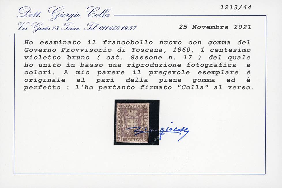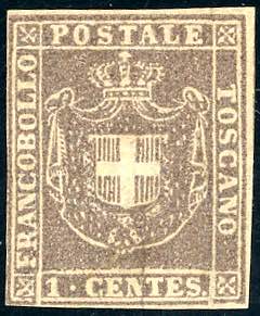 Lot 879 - 1860 - 1 cent. violetto bruno (17), nuovo, gomma originale, ...