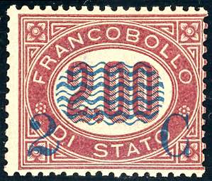 Lot 1018 - 1878 - 2 cent. su 2 lire Servizio soprastampati (34), ...