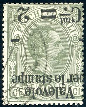 1890 - 2 cent. su 10 cent. Valevole per le stampe, soprastampa capovolta (50a), usato, perfetto. Raro. Fiecchi, cert. Oro Raybaudi.